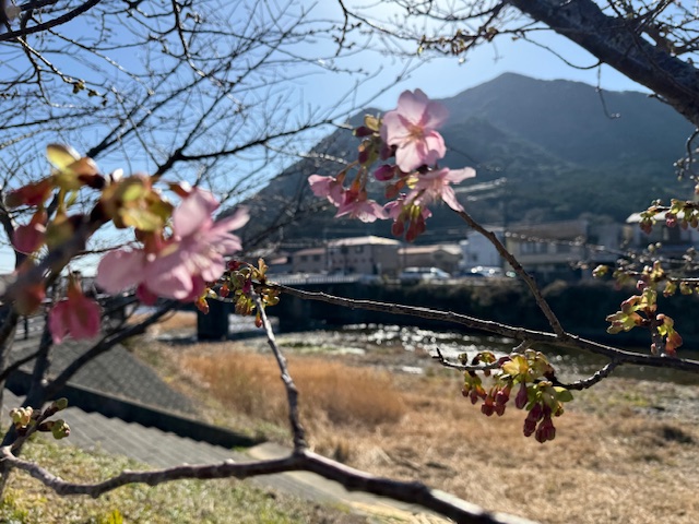 今年は暖かいので河津桜の開花が早いそうです。例年より1カ月ほど開花が早いって報道もございます。